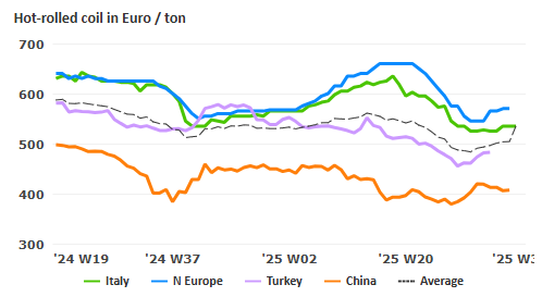 Voor gelaste buizen hebben de fabrieken hun prijzen licht verhoogd. Het moet nog blijken of de markt deze accepteert. De druk wordt wel hoger omdat producenten van het voormateriaal (warmgewalst bandstaal) de CBAM betalingen in hun prijs voor het vierde kwartaal zullen verwerken. In de prijsontwikkeling (zie grafiek) is deze trend al zichtbaar. En nu komt de prijsdruk door de aangekondigde nieuwe Safeguard maatregelen daar nog bovenop.
