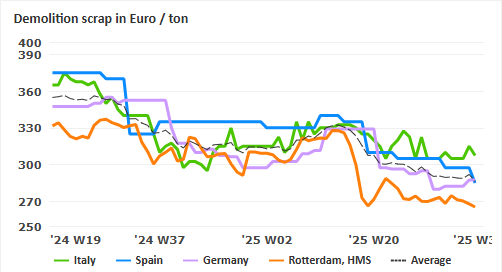 Prijsontwikkeling schroot tm wk 38 (source Kallanish)